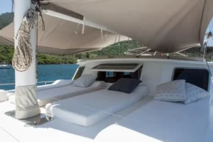 • Güverte Duşu, Pruva Güneşlenme Terası ve Yüzme Platformu: Denizin tadını çıkarırken rahatlatıcı alanlar